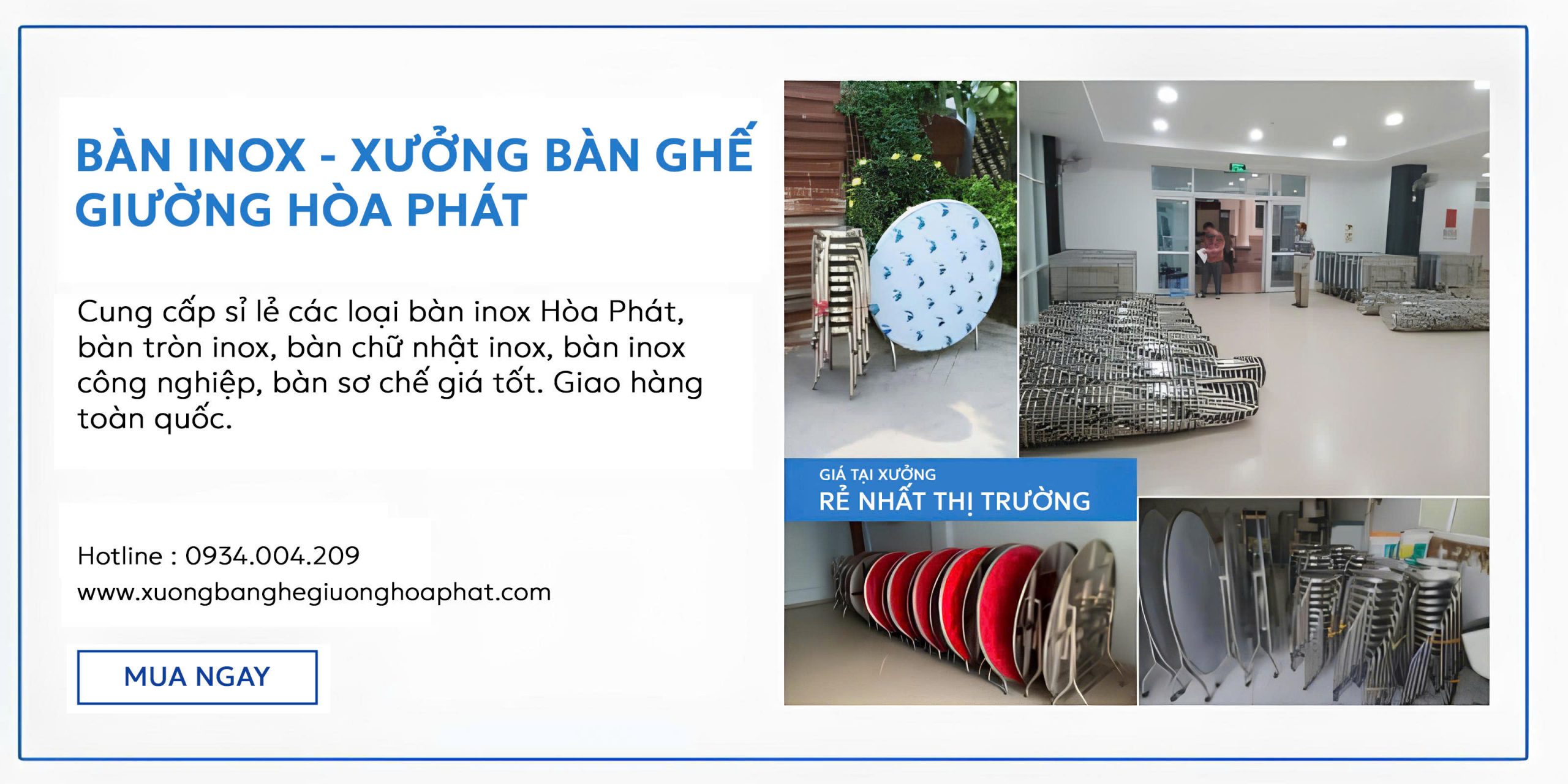 Với hơn 10 năm kinh nghiệm sản xuất trực tiếp các dòng sản phẩm từ giường sắt, bàn ghế inox đến tủ locker và kệ bếp công nghiệp, Nội Thất Inox Hòa Phát hiểu rõ điều khách hàng cần không chỉ là độ bền mà còn là sự an tâm. Chúng tôi tin rằng mỗi bộ bàn ghế, mỗi chiếc giường tầng đều có thể góp phần tạo nên một không gian gọn gàng, hiện đại và tiện nghi dù là trong ký túc xá công nhân, nhà ăn tập thể hay căn bếp của một nhà hàng đông khách.